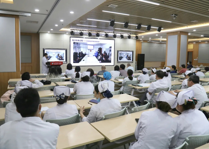 赛后,陆方阳院长进行了发言,指出此次活动举办十分有意义,从大家演示的PPT内容之中可以看出各部门对院感防控工作十分重视。“院感无小事,暴发就是大事”,他希望能以这次竞赛活动为契机,进一步提升院感防控意识,每一位医护人员都应该重视院感,从自身的一点一滴做起,使医院成为最干净的地方,为广大病患铸就一个铜墙般的防控壁垒。