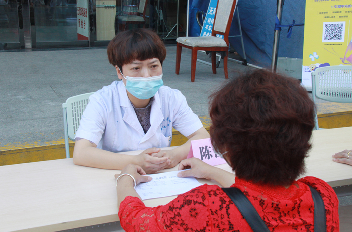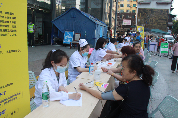 医务人员通过发放健康科普资料、科普宣传展板等形式向市民讲解甲状腺疾病相关知识,同时免费为市民测血压、测血糖,有效增强市民对甲状腺疾病的健康意识。