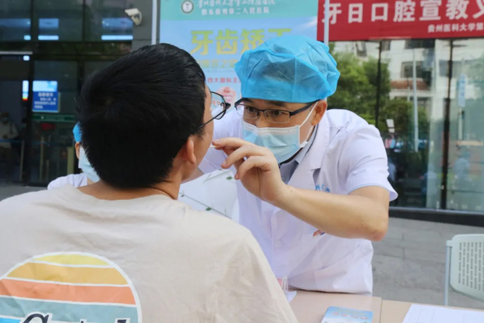 在凯里学院义诊现场,口腔科医护人员向该校师生免费发放宣传资料、讲解口腔卫生知识,还针对不同程度的口腔健康疾病进行了细致的检查。医护人员结合自身临床经验,解答了师生们关于口腔保健等问题,并提出治疗方案和合理化建议,有效提升师生对口腔疾病防治及护理的意识。